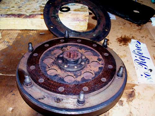 On tombe alors sur un flasque qui isole l'embrayage de l'huile moteur. Et quelques vis plus tard, nous arrivons au sérieux !