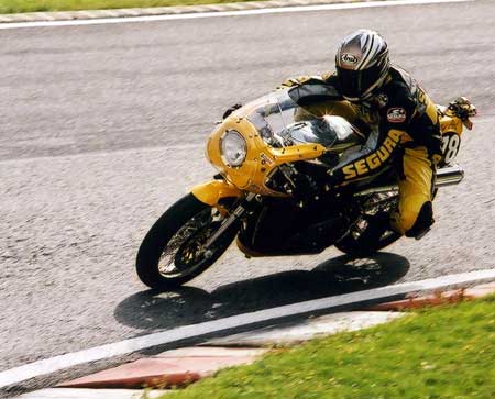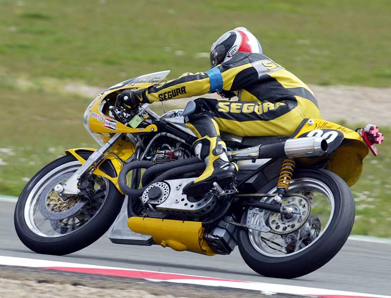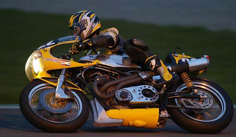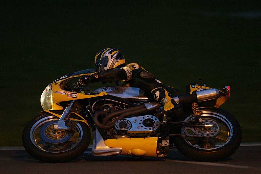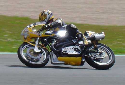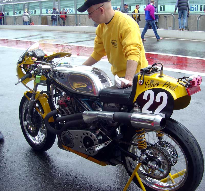 Photo de Serge M. Au Bol Classic 2005 : En tête de la première manche jusqu'à h - 90 secondes(courroie du primaire qui a perdu toutes ses dents) ... La Norton nous a offert une superbe victoire dans la seconde manche. Finalement 3ième au générale (6 - 1) Magnifique week-end malgré un peu de pluie, et puis quelle bagarre entre la kawa de 140 CH et la Norton et ses 80 bourrins .. Des images gravés a jamais dans ma mémoire Philippe B.
