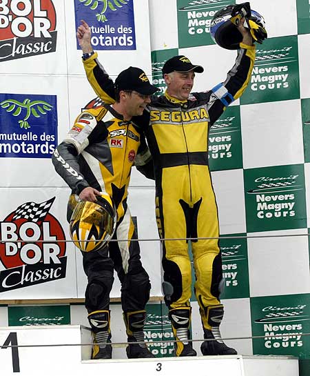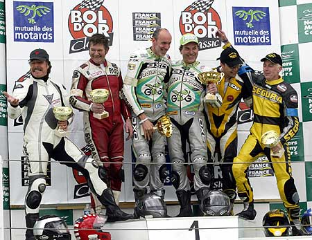 Ne pas oublier la prestation très méritante de Jean Baptiste Le Bars et d'Emmanuel Pliquet sur leur Trident et de Steve et Bruno Perlinski sur Norton MK4. Bref, c'était l'année de l'anglaise à Magny Cours.